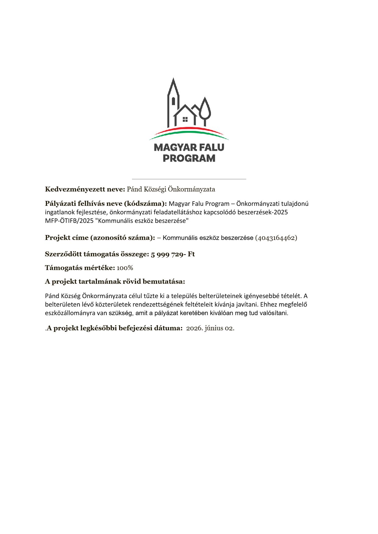 Magyar Falu Program - MFP - ÖTIFB/2025 " Kommunális eszköz beszerzése"